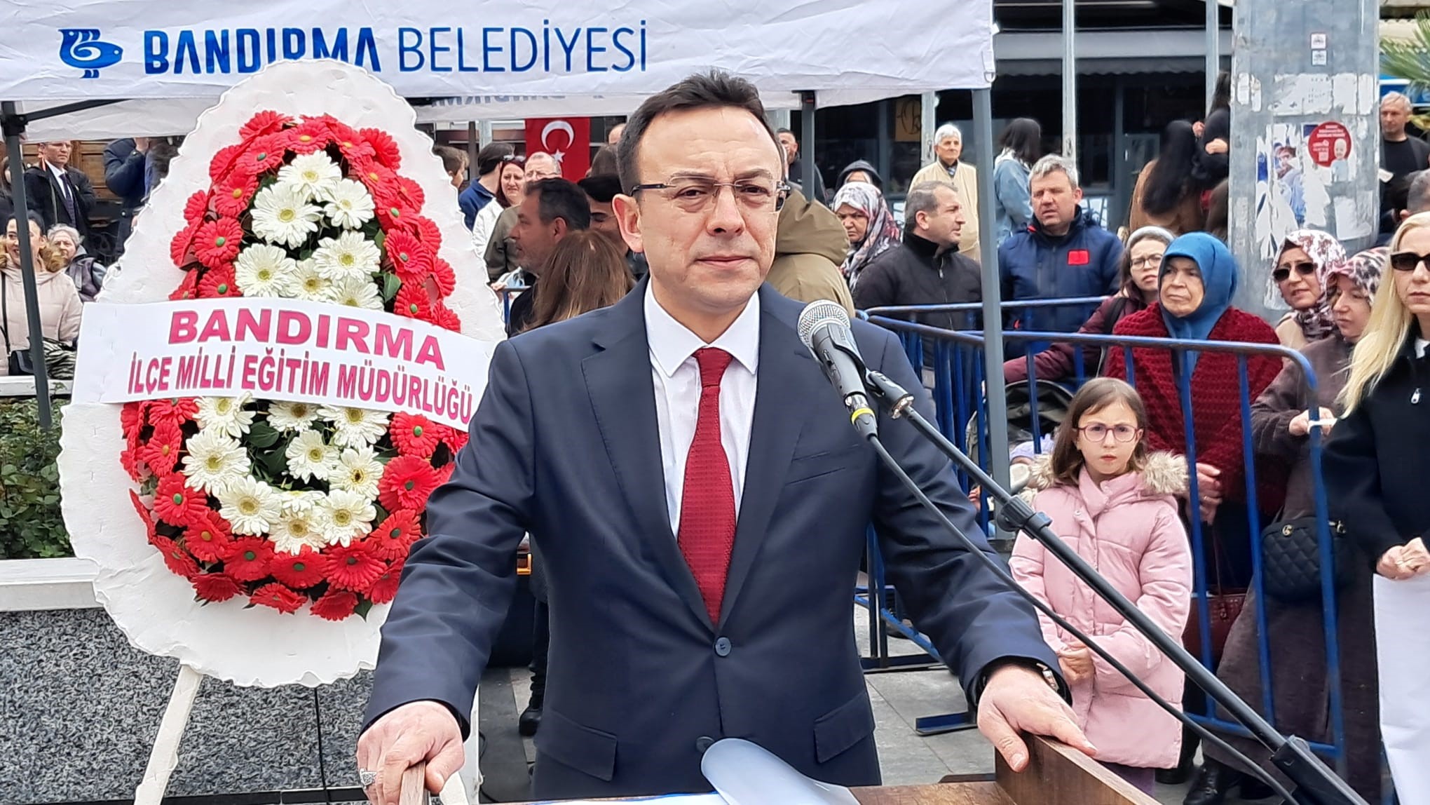Saygı duruşu ve İstiklal Marşı’nın okunmasının ardında günün anlam ve önemini belirten konuşmayı İlçe Milli Eğitim Müdürü Mutlu Aslan yaptı. Mutlu Aslan konuşmasında ” Gözümüzün nuru sevgili çocuklar; Sizleri saygı, sevgi ve muhabbetle selamlıyorum.