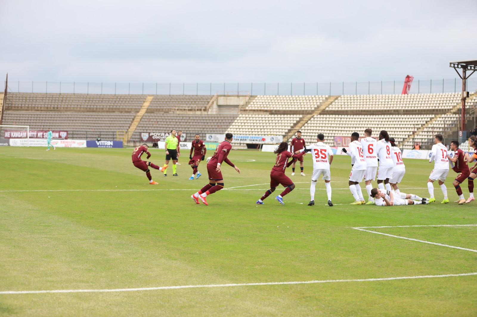 Vanspor karşısında maça Bandırmaspor hızlı başladı. 1. Dakikada gelişen atakta Mücahit’in şutu Çağlar’dan döndü. Dönen topu Ndongala kaleci Çağlar’a teslim etti. 5. Dakikada Bandırmaspor serbest atış kazanırken Oulare sarı kart gördü. . Mücahit’in şutu savunmadan döndü. GOOOLLL Bandırmaspor 14. Dakikada öne geçti. Ndongala’nın çevirdiği topu Amaral şutladı. Çağlar’dan dönen topu Kehinde filelere yolladı. ( 1-0 ) 19. Dakikada Ndongala ceza sahasında topla buluştu. Şutunu Çağlar ayaklarıyla kurtardı. 26. Dakika Ndongala’nın pasıyla Amaral kaleci çağlar ile karşı karşıya kaldı. Vuruşu yandan auta çıktı. Bu pozisyonda Amaral sakatlanarak oyundan çıktı. 30. Dakikada Amaral’ın yerine Emirhan girdi. 31. Dakikada bu kez Vanspor gole yaklaştı. Ceza sahası içinden Hostikka’nın şutunu Arda çeldi. Devam eden pozisyon için VAR devreye girdi. Hakem penaltı noktasını gösterdi. Enes sarı kart gördü. 35. Dakikada Jefferson topu filelere yolladı. Ancak hakem atışı tekrarlattı. Bu kez Arda gole izin vermedi. İlk yarı karşılıklı ataklar ile sona erdi. ( 1-0 )