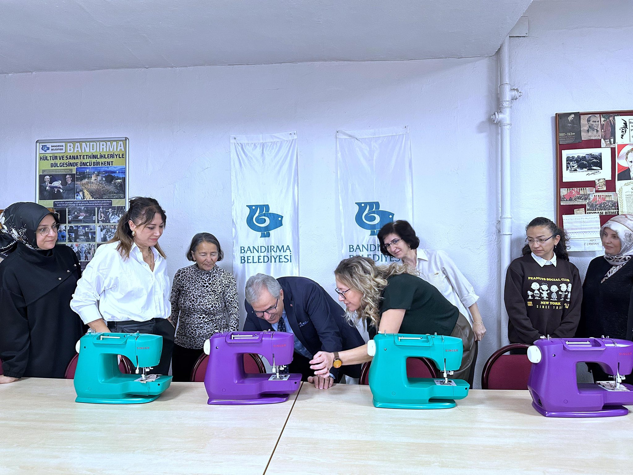 Bandırma Belediyesi’nin kadın istihdamını ve üretime katılımı destekleyen çalışmaları kapsamında gerçekleştirilen bu destekle, kursiyerlerin el emeği ürünlerini daha etkin biçimde üretmeleri hedefleniyor.
