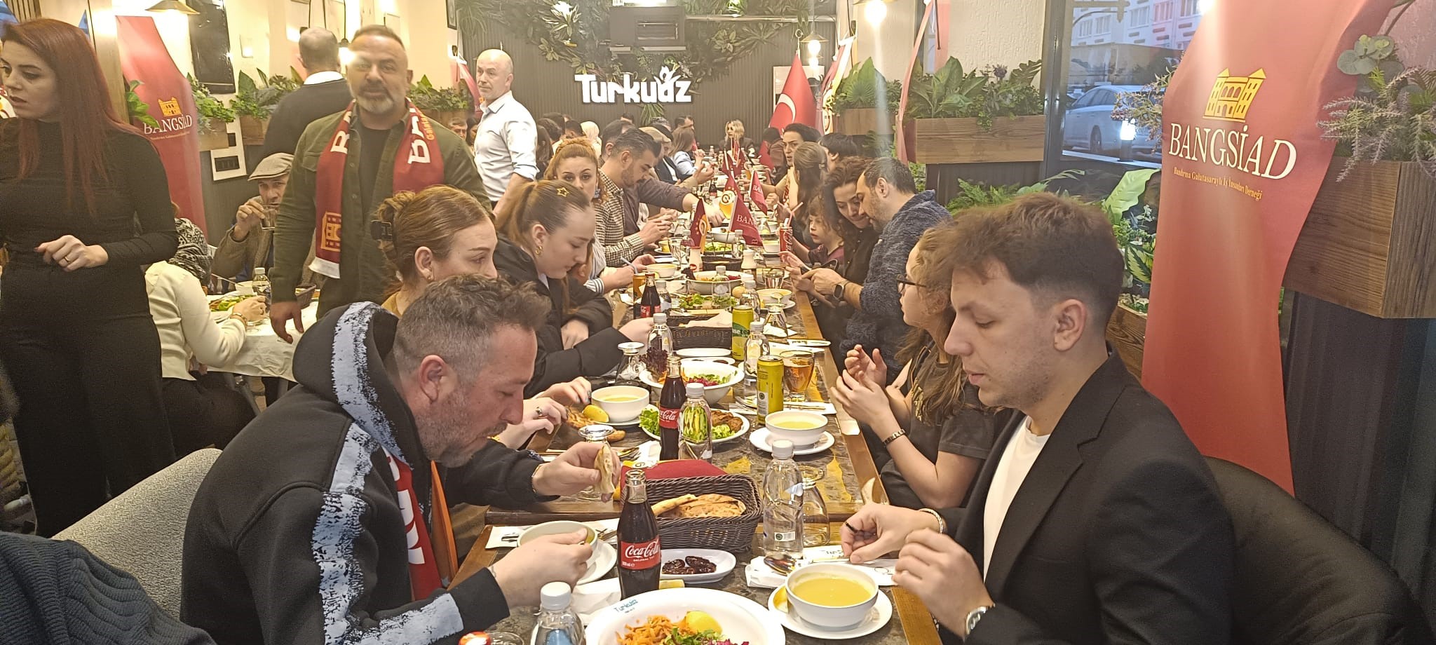 Turkuaz Pide ve Et Salonunda gerçekleşen iftar yemeğine Ak Parti İlçe Başkanı Göksel Karlahan, Ak Parti Yönetim Kurulu üyesi Orhan Özyurtlu, CHP Yönetim Kurulu üyesi Tarık Demir ve Galatasaylı iş insanları ve aileleri katıldı.