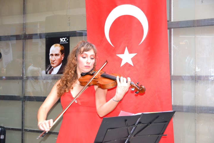 Türkiye Cumhuriyetinin 100. yılı dolayısıyla Bandırma’da etkinlikler devam ediyor. Bu kutlamalar çerçevesinde ADD ve ÇYDD Kapalı Çarşıda Cumhuriyet Şenliği düzenledi. saygı duruşu ve İstiklal Marşı’nın okunmasının ardından keman sanatçısı Hazal Saraçoğlu keman dinletisi sundu. Bandırma Belediye Başkanı Tolga Tosun kısa bir konuşma yaparak böyle bir etkinliği düzenledikleri için ADD ve ÇYDD teşekkür etti.