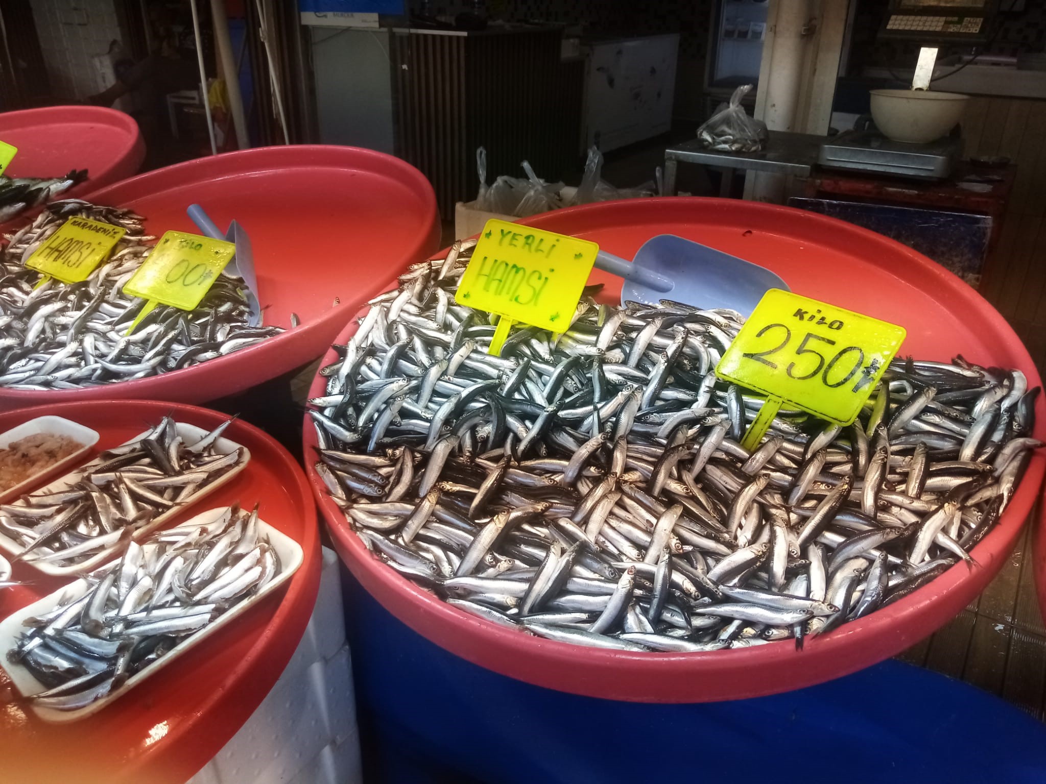 Bandırma Balık halinde son günlerde Çinekop ve Hamsi bolluğu yaşanıyor. Son günlerde etkili olan Lodos tezgahlara bol miktarda Çinekop ve Hamsi getirdi. Yaşanan Çinekop bolluğu sebebiyle daha önce kilosu 1000 TL ye satılan Çnekop’un fiyatını 500TL ye düşürdü. Balık tezgahına bolca görünen Hamsi ise, Karadeniz Hamsi 250, Marmara yerli Hamsi de kilosu 200 TL den satılıyor. Tezgahlarda yerini alan İstavrit ve Sardalya kilosu 200 TL den satılırken, balık haline az miktarda gelen Palamut ise tanesi 500TL den satılıyor. Balıkçı esnafları önümüzdeki günlerde Çinekop ve Hamsi bolluğunun devam etmesini beklediklerini söylediler.