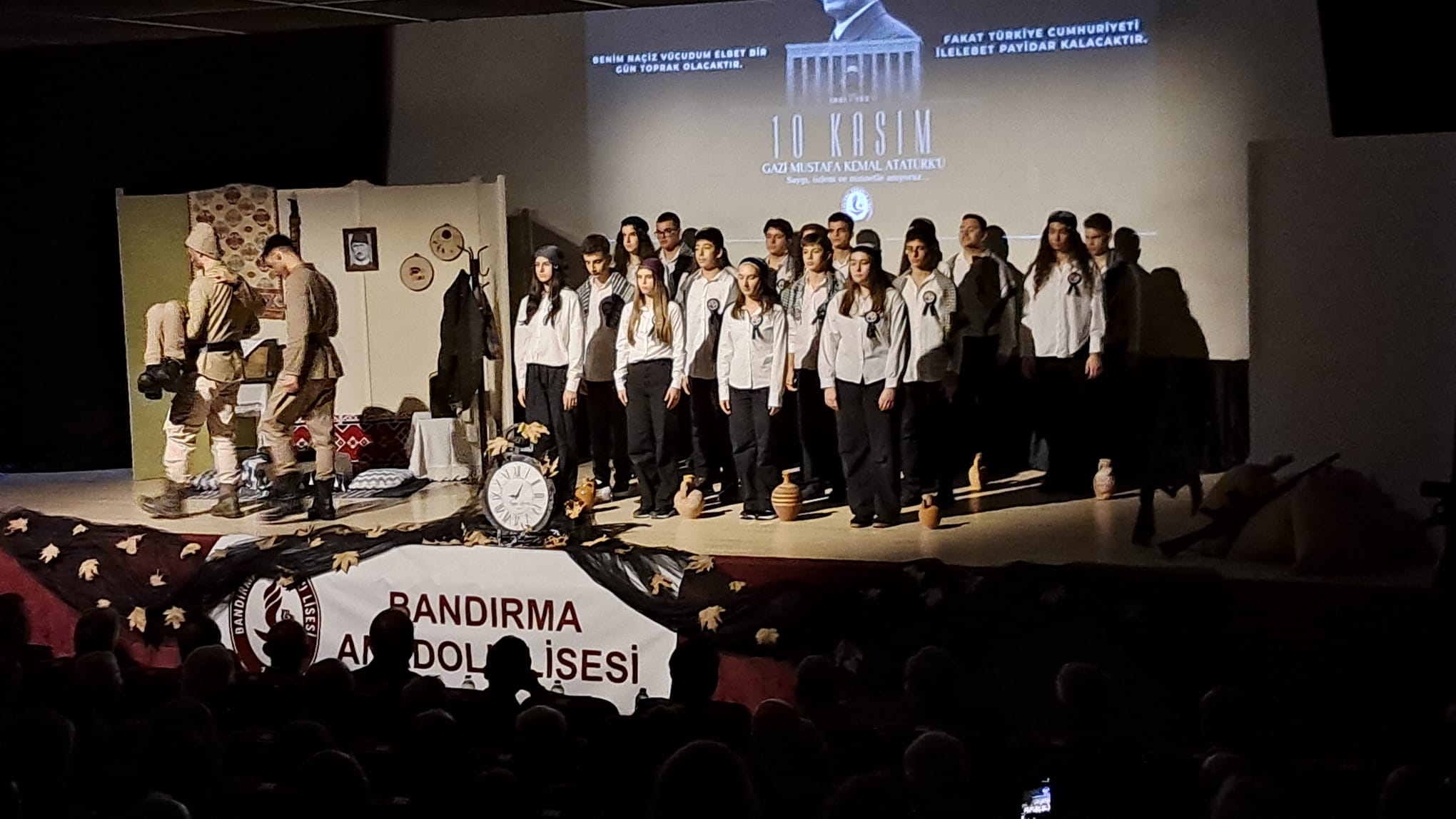 Türkiye Cumhuriyetinin kurucusu Gazi Mustafa Kemal Atatürk’ün 87. ölüm yıldönümünde Bandırma’da anıldı. İlk tören Cumhuriyet Meydanında gerçekleşti. Törene İlçe Kaymakamı Engin Aksakal, Garnizon Komutanı Tuğgeneral Esat Çetin, Belediye Başkanı Dursun Mirza, siyasi parti temsilcileri, gaziler, şehit yakınları, öğrenciler ve vatandaşlar katıldı. Çelenklerin Atatürk anıtına konulmasının ardından saat 09.05 te sirenleri çalındı ve saygı duruşu gerçekleştirildi. Okunan şiirlerin ardından Cumhuriyet Meydanındaki tören sona erdi.