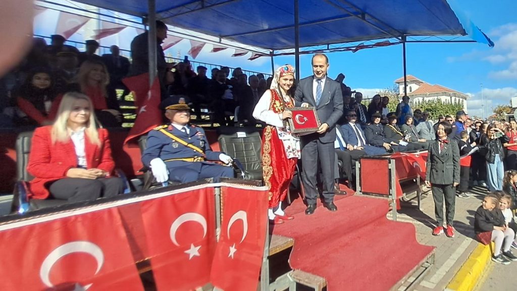Protokolün halkı selamlamasının ardından saygı duruşu ve İstiklal Marşı okundu. Cumhurbaşkanı Recep Tayyip Erdoğan’ın Cumhuriyet Bayramı mesajı okundu. İlçe Kaymakamı Engin Aksakal’ın günün anlam ve önemini belirten konuşmasının ardından öğrenciler Cumhuriyet konulu şiirlerini okudular. Halk oyunlarının ardından tören resmi geçit ile sona erdi.
