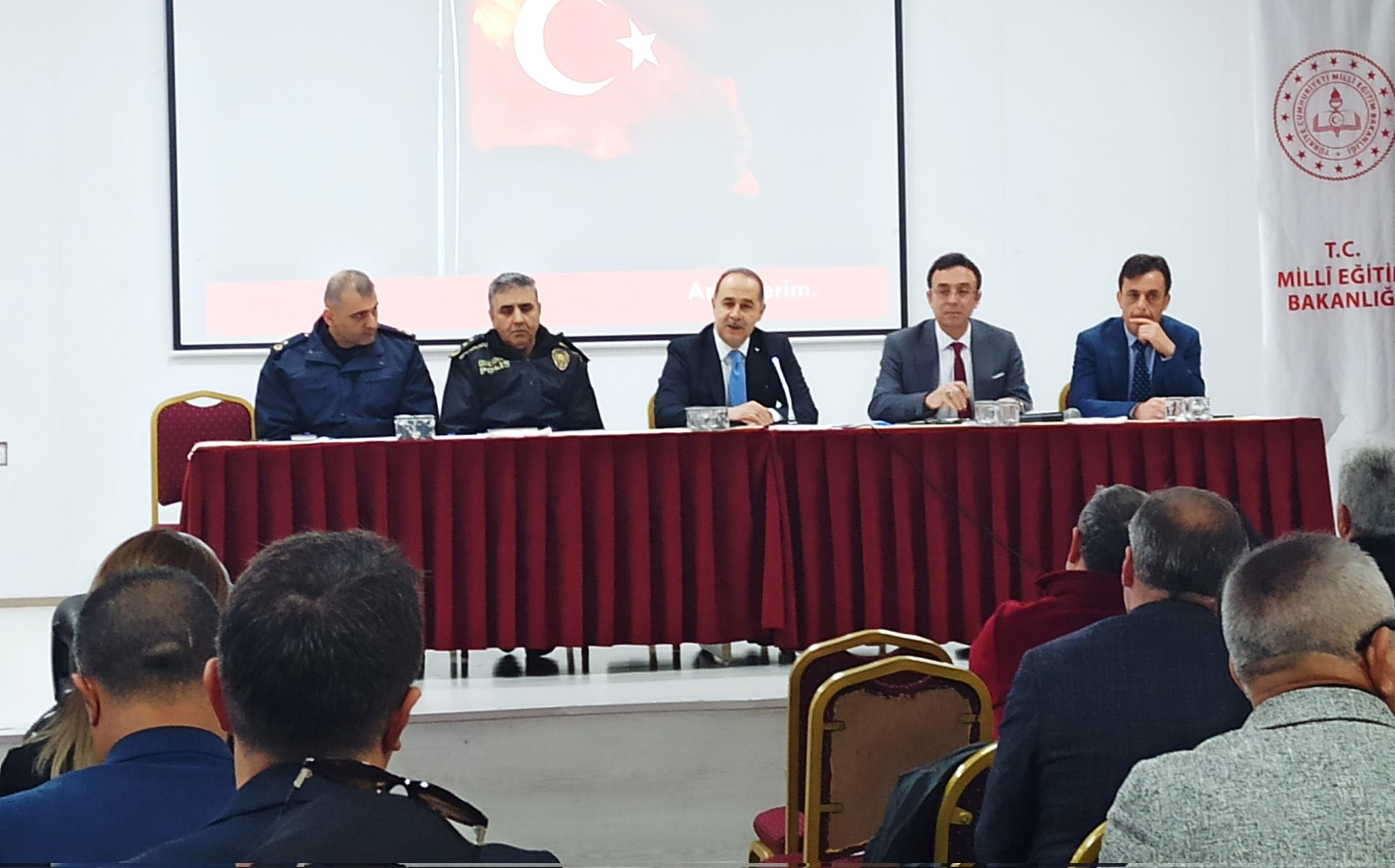 İlçe Kaymakamı Engin AKSAKAL başkanlığında ilgili kurum amirleri, okul müdürleri, okul aile birliklerinin katılımıyla 2025-2026 Eğitim Öğretim Yılı 2.Dönem okul güvenliği toplantısı gerçekleştirildi. Toplantıya İlçe Emniyet Müdürü Mesut Demirdaş, İlçe Jandarma Komutanı Bnb. Onur Durna, İlçe Milli Eğitim Müdürü Mutlu Aslan, İlçe Sağlık Müdürü Osman İmren, Şoförler ve Otomobilciler Odası Başkanı Osman Çapar ve okul yöneticileri katıldı.