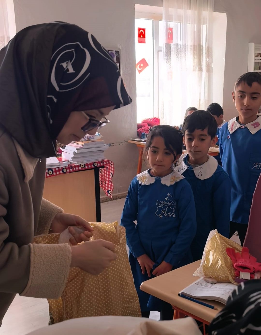 Kadın-Der Başkanı Esen Ersoy öncülüğünde, Genel Merkez üyeleri tarafından hazırlanan hediyeler, Ağrı’daki köy okullarına ulaştırılmak üzere Ağrı İl Temsilcisi Semiha Yiğit aracılığıyla öğrencilerimize teslim edildi.