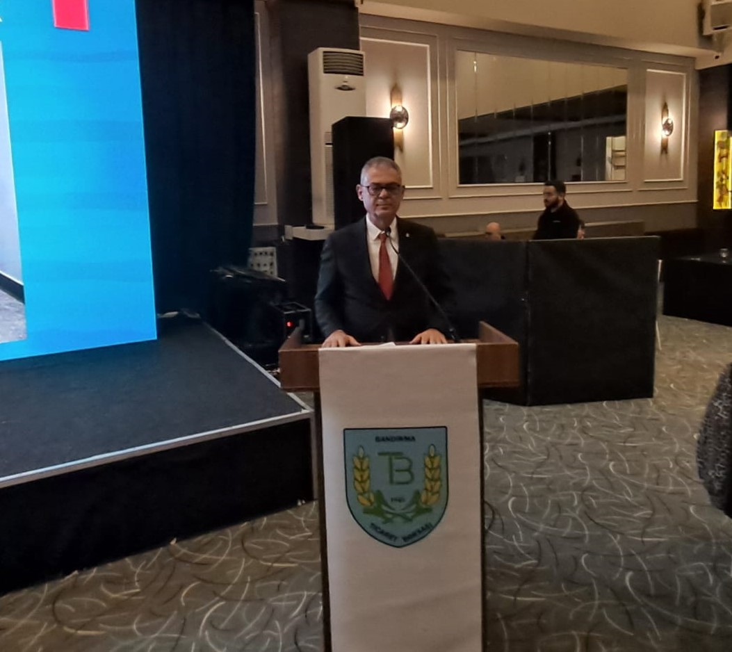 Konuşmasını yapan Ticaret Borsası Yönetim Kurulu Başkanı Can Ata Tan yaptığı konuşmada 2022 yılı Kasım ayında seçilerek görevi devraldık diyen Tan ” Ben, bizleri bu göreve layık gören tüm üyelerimize teşekkür ederim. Geçirdiğimiz bu üç yıl boyunca yaptığımız faaliyetleri size başlıklar halinde anlatmak istiyorum. Öncelikle, bundan önceki yönetime, Rahmetli Halil Sezgin Başkanıma, Meclis Başkanımız İsmail Beye ve yönetimlerine, üyelerine önceki hizmetlerinden ve bize bıraktıkları bu değerli kurum adına teşekkür etmek isterim.