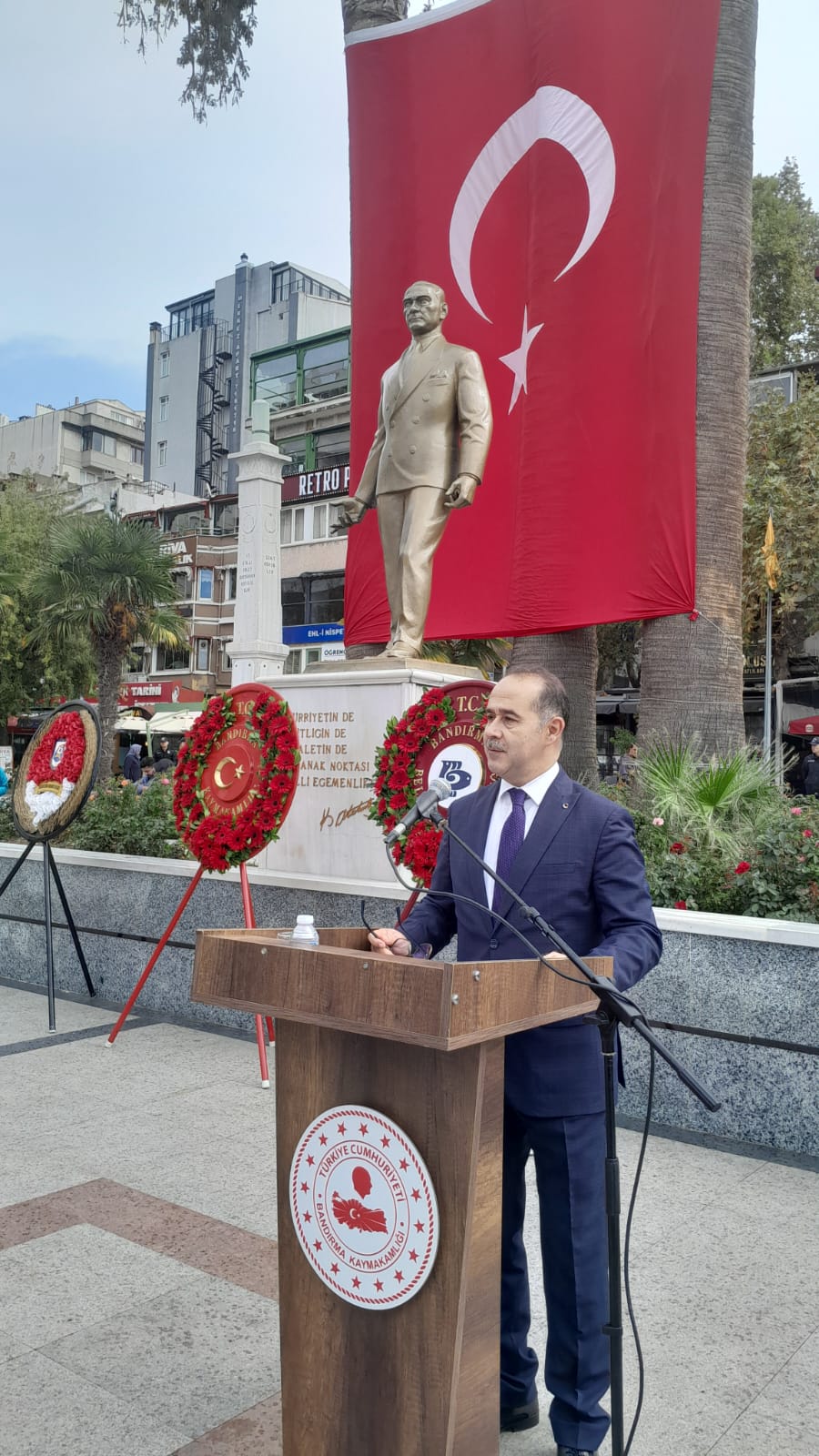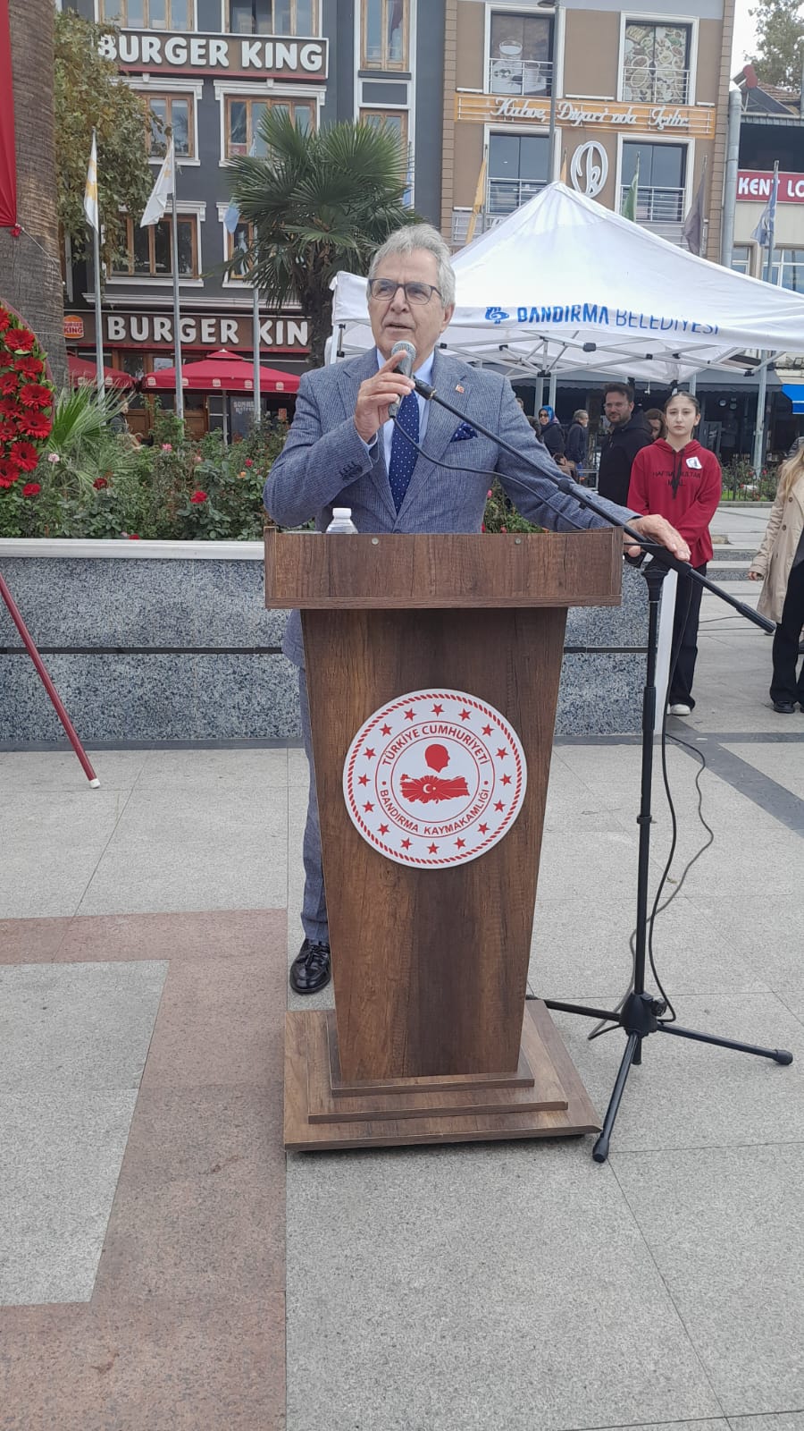 Türkiye Cumhuriyeti’nin Kurucusu Gazi Mustafa Kemal Atatürk’ün 8 Ekim 1925’te Bandırma’ya ilk kez gelişinin 100. Yıldönümü bugün törenlerle kutlandı. Bandırma Kaymakamı Engin Aksakal, Balıkesir Büyükşehir Belediye Başkanı Ahmet Akın, Bandırma Belediye Başkanı Dursun Mirza, Başkan Yardımcıları, Daire Müdürleri, STK Başkanları, Muhtarlar, Askeri Erkan ve çok sayıda katılımcının yer aldığı törenlerde Atatürk’ü temsil eden Ayyıldızlı Türk Bayrağı iskeleye yanaşan bir römorkörden öğrencinin ellerinde indirilerek Bandırma Kaymakamı Engin Aksakal’a teslim edildi. Ayyıldızlı Bayrağımızı öperek teslim alan Kaymakam Aksakal’ın ardından saygı duruşu ile törenlerin ilk kısmı sona erdi. Protokol daha sonra L İskeleden Cumhuriyet Meydanı’na doğru yürüdü. Cumhuriyet Meydanı’nda İstiklal Marşı’nın okunması ve Saygı duruşu ile başlayan törenlerde günün anlam ve önemini belirten konuşmayı Bandırma Belediye Başkanı Dursun Mirza yaptı. Mirza konuşmasında, ” Bugün Bandırmamızın tarihindeki en önemli günlerden birini yaşıyoruz. Şanlı Kurtuluş Savaşımızın Başkomutanı, Cumhuriyetimizin kurucusu, büyük önderimiz Gazi Mustafa Kemal Atatürk’ün şehrimizi ziyaretinin 100. yıl dönümündeyiz. Tüm dünyanın ve hatta düşmanlarının bile içtenlikle saygı duyduğu büyük önderi şehrimizde ağırlamış olmaktan dolayı mutluyuz, gururluyuz. Çağdaş, laik Türkiye Cumhuriyetinin kuruluş değerlerine yürekten bağlı her Bandırmalı için bu büyük bir onurdur. Bandırma; ulusumuzun tarihinde silinmez izler taşıyan, tarihe şahitlik eden bir şehirdir. Tam 100 yıl önce bugün, şehrimizde görülmeye değer büyük bir sevinç vardı. 8 Ekim 1925 Perşembe günü Atatürk’ün Bandırma’ya geleceği duyurulmuştu. Öğlen saatlerinde Ertuğrul yatıyla iskeleye yanaşan Atatürk, Bandırmalıların yoğun sevgisi ve ilgisiyle karşılandı. Nasıl sevilmez ki böyle bir lider? Bu milleti kölelikten, yok olmaktan kurtaran, özgür ve bağımsız yaşadığımız yepyeni bir devlet kuran Atatürk, sevilmez mi? Atatürk, şehrimizde gezerken, 2 yıldan fazla işgal altında kalan Bandırmamızdaki işgalin izlerini gördü. Sonra, hepimizin belleğine kazınan o konuşmasında: “Milletimiz çalışkandır! Bu fazileti taşıyan Bandırmalıların en kısa zamanda şehirlerini imar edeceklerinden, halen barut ve is kokan bu güzel beldeyi mamur hale getireceklerinden hiç şüphe etmiyorum” dedi. O’nun güvenine layık olmak adına şehrimiz ve ülkemiz için hiç durmadan çalışmaya devam ediyoruz. Kahraman şehit ve gazilerimizin aziz vatanın korunması, ulusumuzun hürriyet ve bağımsızlığı uğruna yaptıkları fedakârlıkları asla unutmayacağız. Bugün hepimiz için büyük bir gururdur. Çağdaş ve laik Türkiye Cumhuriyetimizi kuran Büyük Önder Gazi Mustafa Kemal Atatürk’ü, Bandırmamızı ziyaretinin 100. yılında rahmet, minnet, saygıyla anıyorum” dedi.
