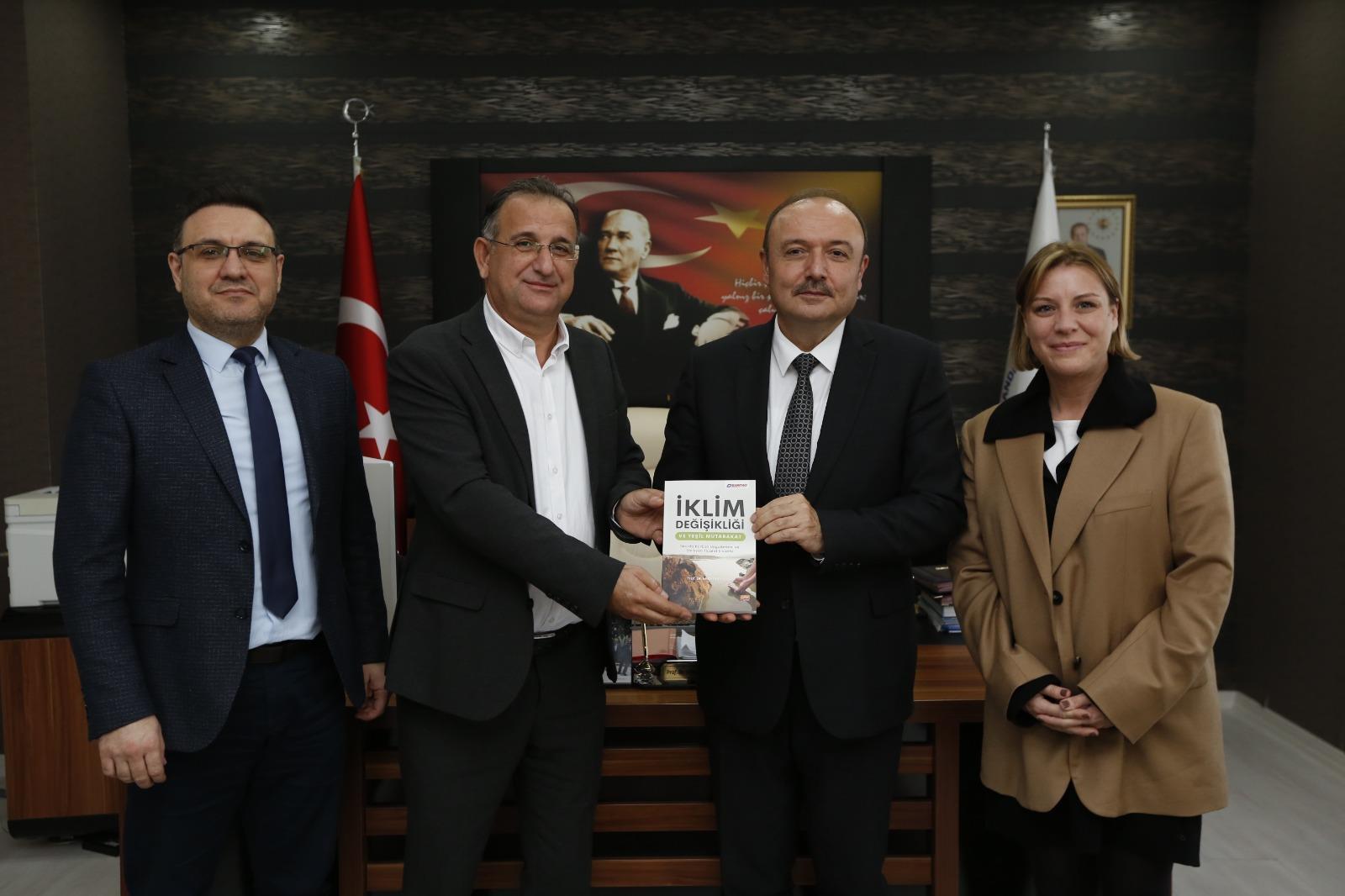 Prof. Dr. Metehan Yılgör, beraberinde BANTAŞ Yönetiminden Vedat Arman ve Melis Çetin ile birlikte Rektörü Prof. Dr. Süleyman Özdemir’i makamında ziyaret ederek, editörlüğünü üstlendiği kitabı takdim etti. Küresel ısınma ve iklim değişikliğine yönelik çalışmaların önemini vurgulayan Özdemir, kitabın hazırlanmasında emeği geçen tüm akademisyenlere özverili çalışmaları ve katkıları için teşekkür etti.