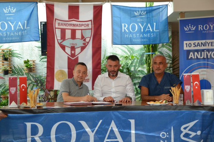 Bandırma Özel Royal Hastanesi Bandırmaspor’a sağlık sponsorluğuna devam ediyor. uzun yıllardan bu yana Bandırmaspor’a hem ağlık hem de isim sponsorluğu yapan Bandırma Özel Royal Hastanesi bu sene de sağlık sponsorluğuna devam eden imzayı attı.
