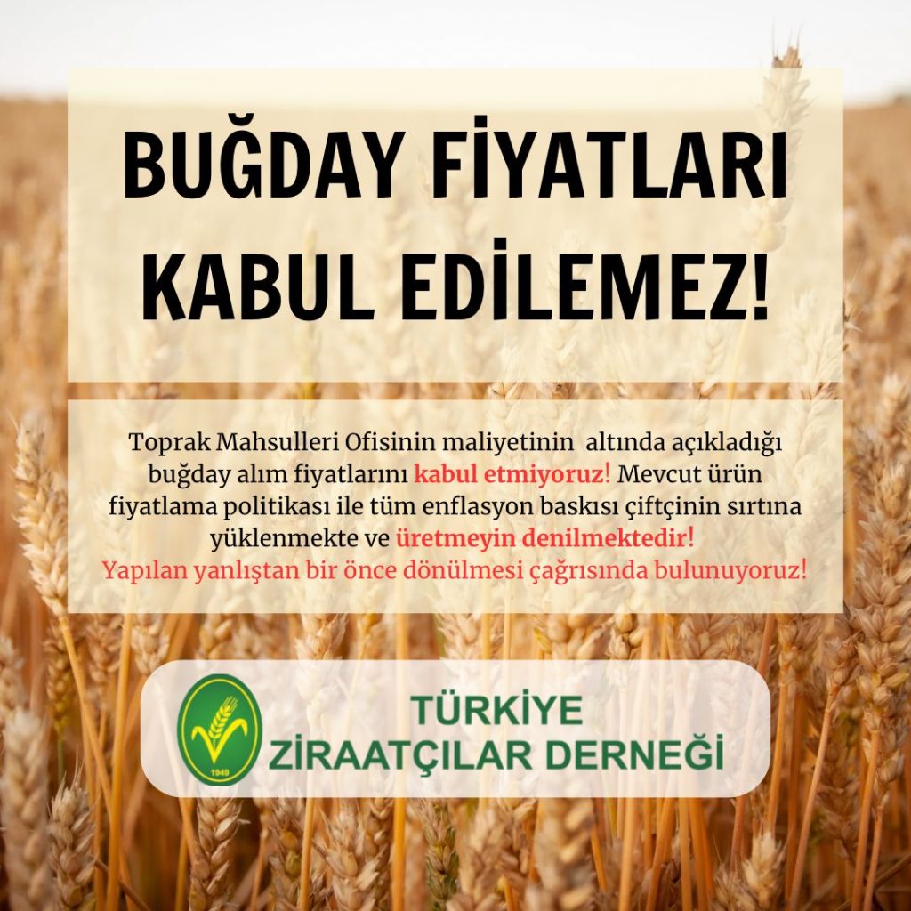Hükümet tarafından dün açıklanan 2024 yılı buğday alım fiyatlarına bir tepki de Türkiye Ziraatçiler Derneği Balıkesir Şube Başkanı Burak Uğur’dan geldi. Fiyat artışını yetersiz bulduklarına vurgu yapan Uğur, “Türkiye genelinde çiftçilerimiz ve tarım sektörünün tüm paydaşları olarak, 2024 yılı buğday fiyatlarının açıklanmasını büyük bir hayal kırıklığı ve endişeyle karşılıyoruz. Açıklanan fiyatların, tarımsal üretim maliyetlerimizle uyumlu olmadığı ve çiftçilerimizin geçimlerini sürdürebilmeleri için yeterli desteği sağlamadığı kanaatindeyiz. Ülkemizde enflasyon düzeyinin %70’ler bandında olduğu resmî kurumlarca da ifade edilmektedir. Tarımsal girdilerin geçtiğimiz yıla göre artışları da incelendiğinde ortalama artış düzeyinin %100 oranında olduğu görülmektedir. Fakat açıklanan hububat alım fiyatlarında uygulanan %20’lik yetersiz artış üretimi durma noktasına getirebilir, çiftçilerin üretimden uzaklaşmasına neden olabilir. Tüm yönetenlere çağrımızdır, bir an önce karar gözden geçirilmeli ve fiyat düzenlenmesi yapılmalıdır. ” dedi.