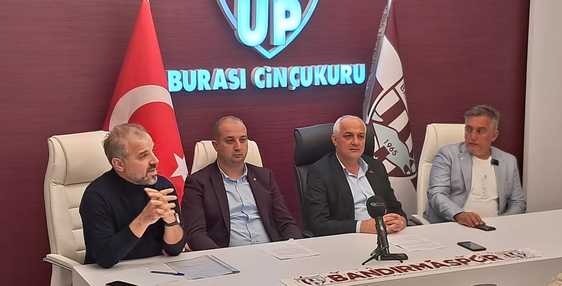 Bandırmaspor Başkanı Murat Karakoyun ve yönetim Kurulu üyeleri kulüp tesislerinde düzenledikleri basın toplantısı ile son günlerde sosyal medyada yer alan eleştirilere yanıt verdiler. Tüm yönetim kurulu üyelerinin hazır bulunduğu basın toplantısında ilk sözü Yönetim kurulu üyesi asbaşkan Ceyhun Cihat Yıldırım aldı.